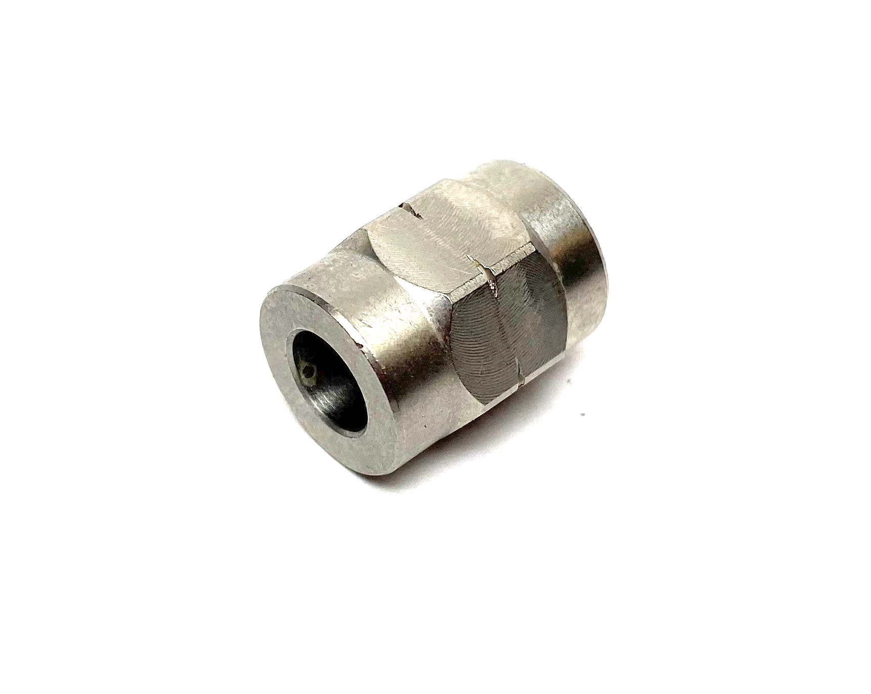 Ruostumaton M10x1,25 sisäkierremutteri. Liitinreikä 6mm.