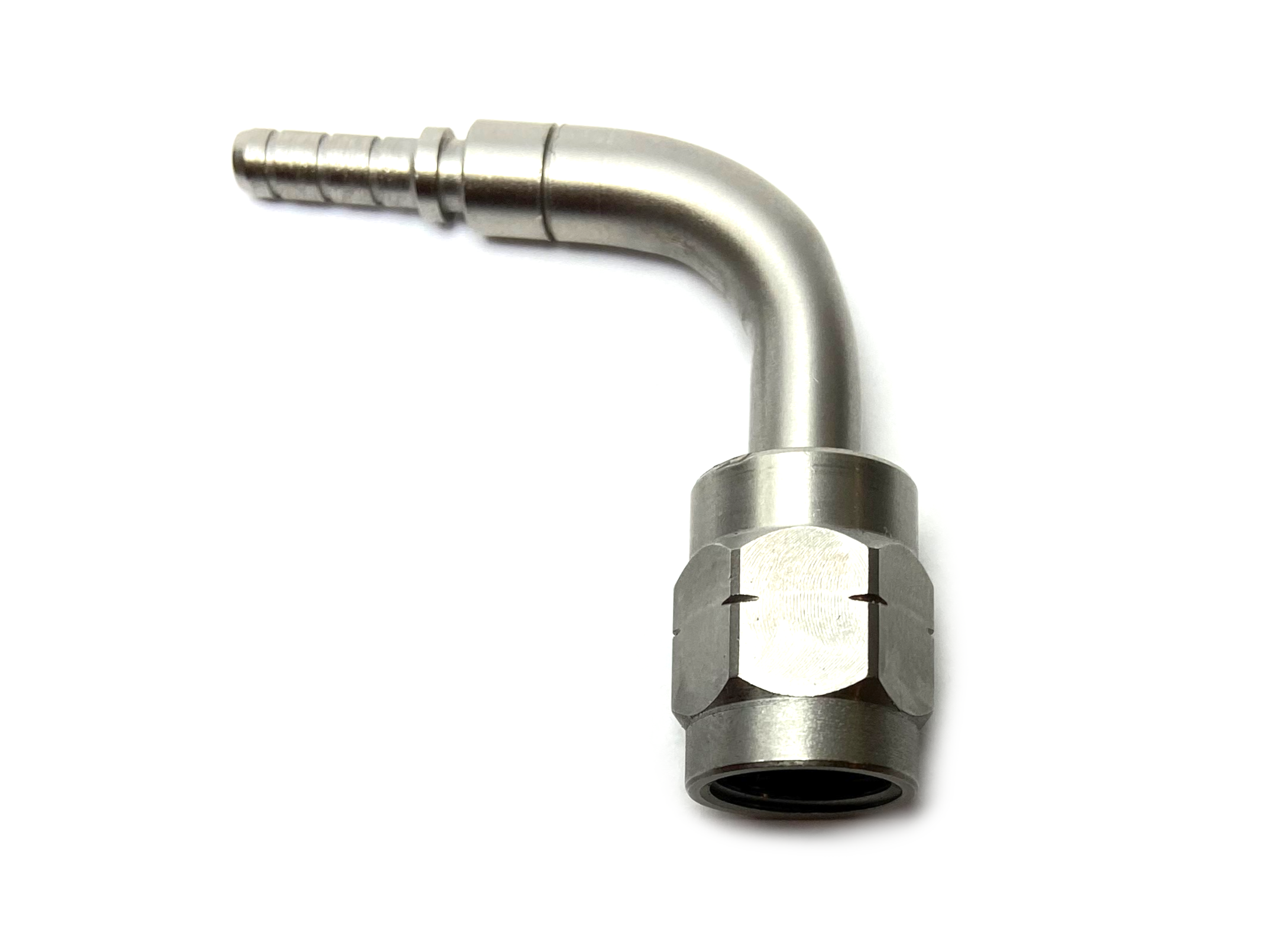 Ruostumaton jarruletkun liitin. Irtomutteri ja 90 asteen kulma. Uros ja naaras tiivistyskartiot.