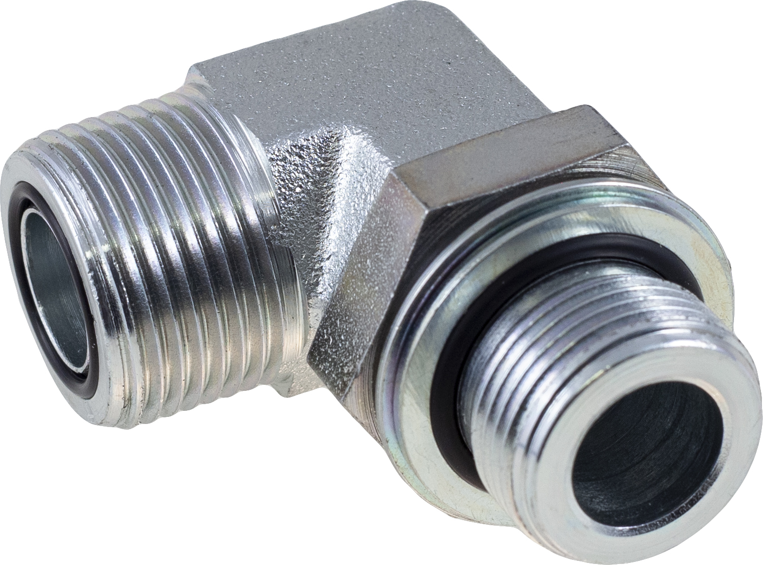 Kulmaliitin hydraulijärjestelmiin. Toisessa päässä UN, toisessa BSP -kierre kiristysmutterilla. Liittimessä 90 asteen kulma. Valitse sopiva kierrekoko.