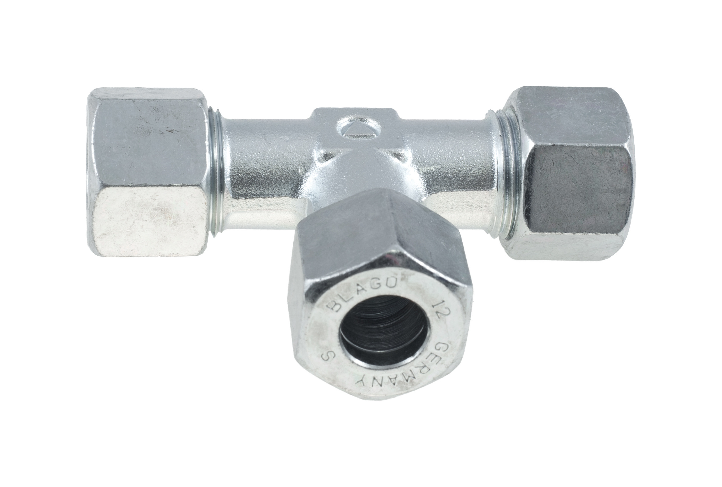 Erikoiskevyt T-liitin hydrauliputkistoihin. Putken koko 5mm.