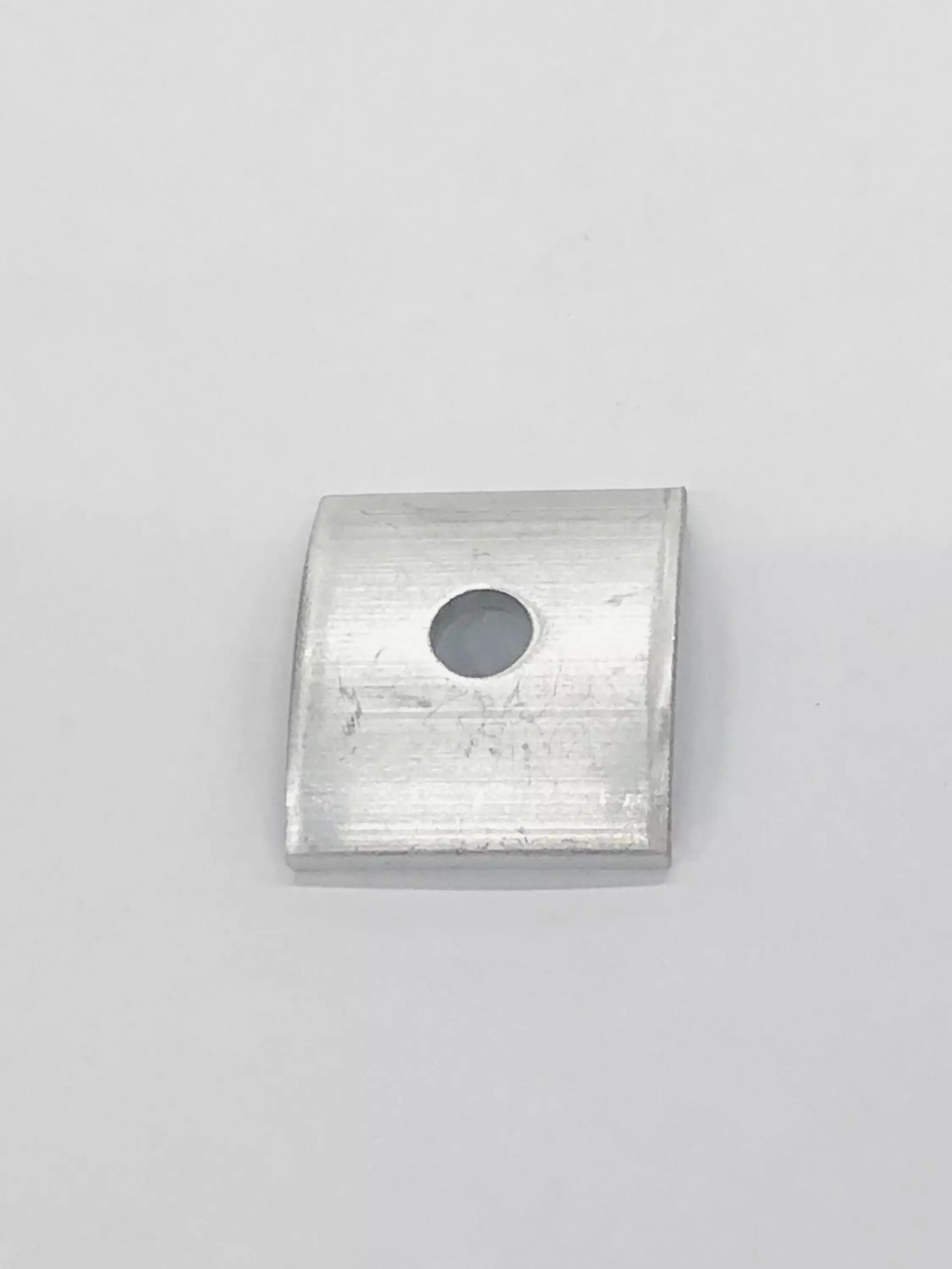 Pyöreän aitatolpan verkon kiinnitykseen suunniteltu alumiininen kiinnike.
