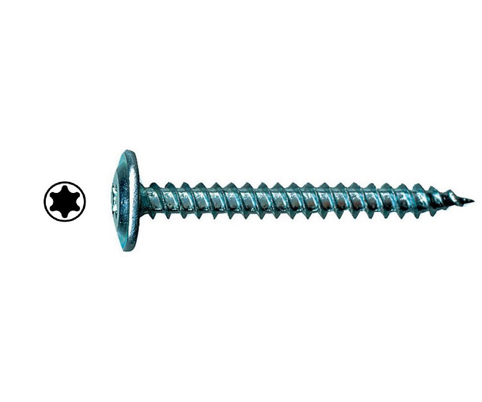 Litteäkantainen/matalakantainen ohutlevyruuvi sähkösinkittynä kaikenlaiseen kiinnitykseen. Torx-kanta.