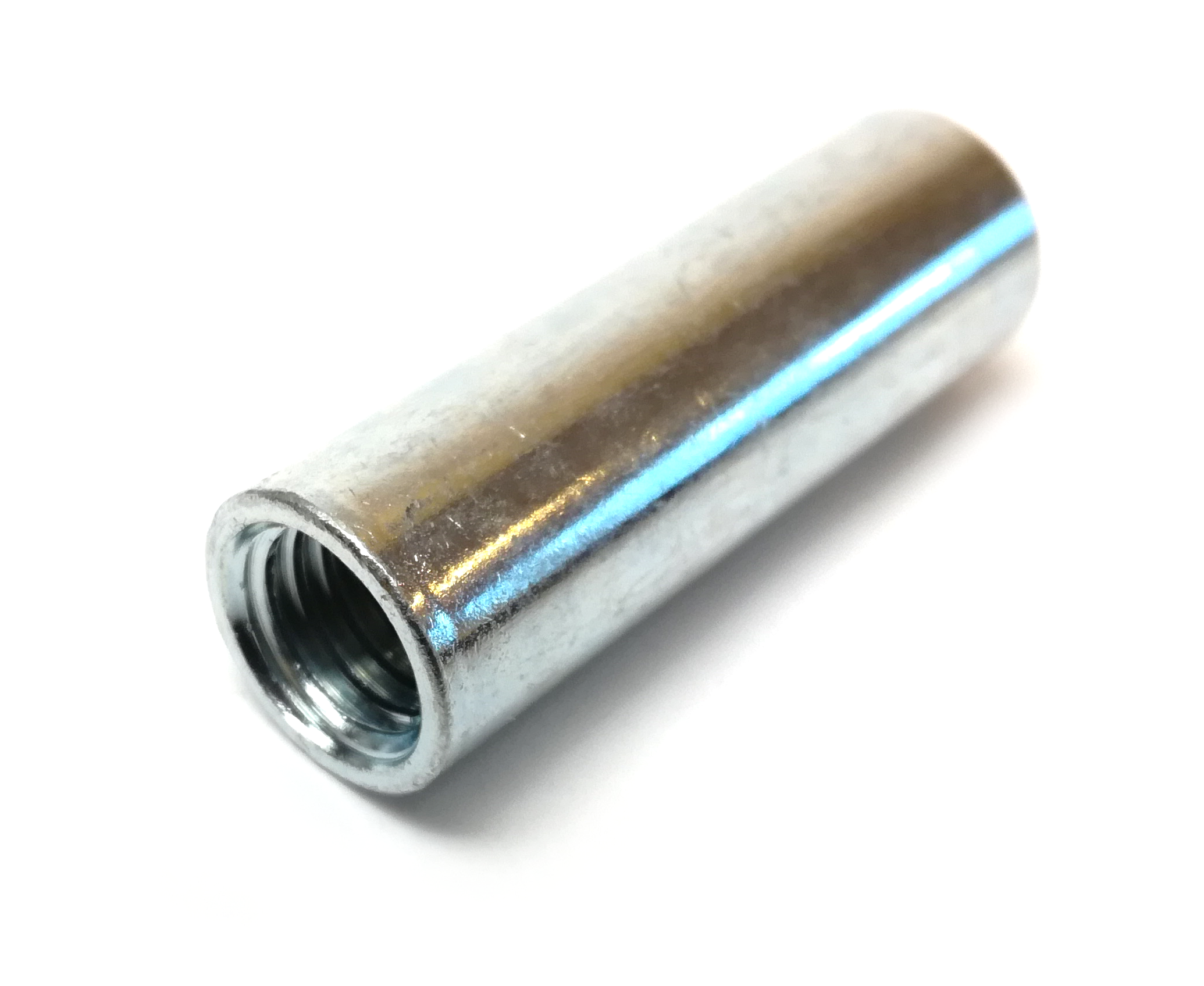 Sähkösinkitty läpikierteinen holkki esimerkiksi kierretankojen liitoksiin.