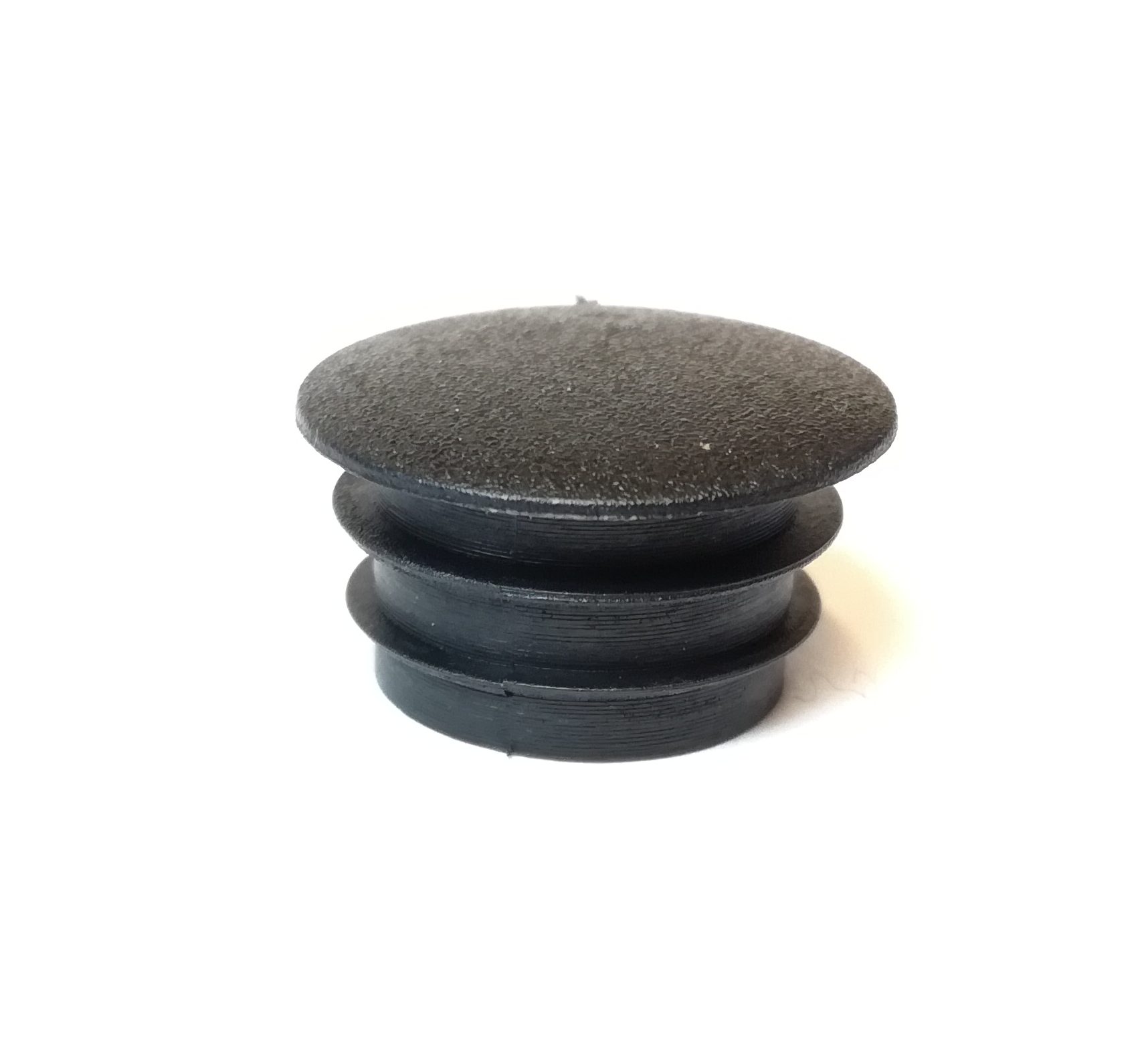 Muovinen, matalakantainen peitetulppa/karmitulppa mustana.