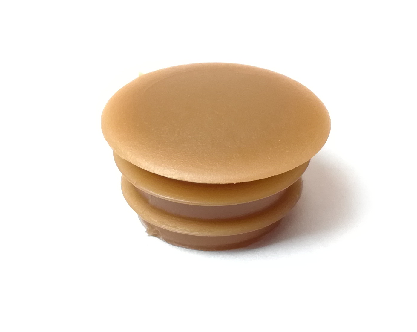 Muovinen, matalakantainen peitetulppa/karmitulppa vaaleanruskeana.