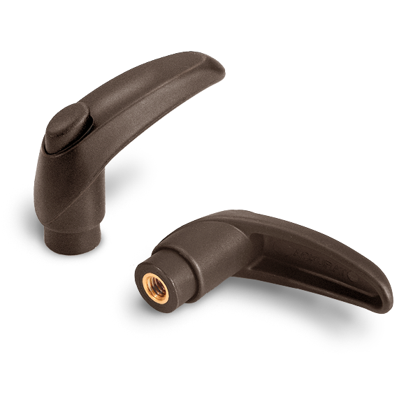 Säätökahva messinkisellä sisäkierteellä. Kahva mustaa muovia.