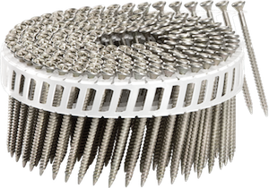 SCRAIL ruostumaton rullaruuvinaula. Lyödään naulaimella, avataan ruuvarilla. Paksuus 3,2mm, pituus 65mm, 16 asteen kulma. Myydään 2000kpl laatikkoina.