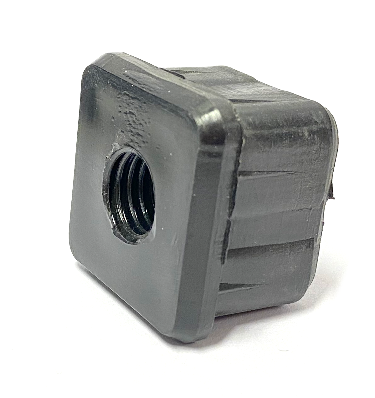 Kierteellinen neliskanttinen muovitalla asennettavaksi esimerkiksi huonekalujen putkijalkoihin.