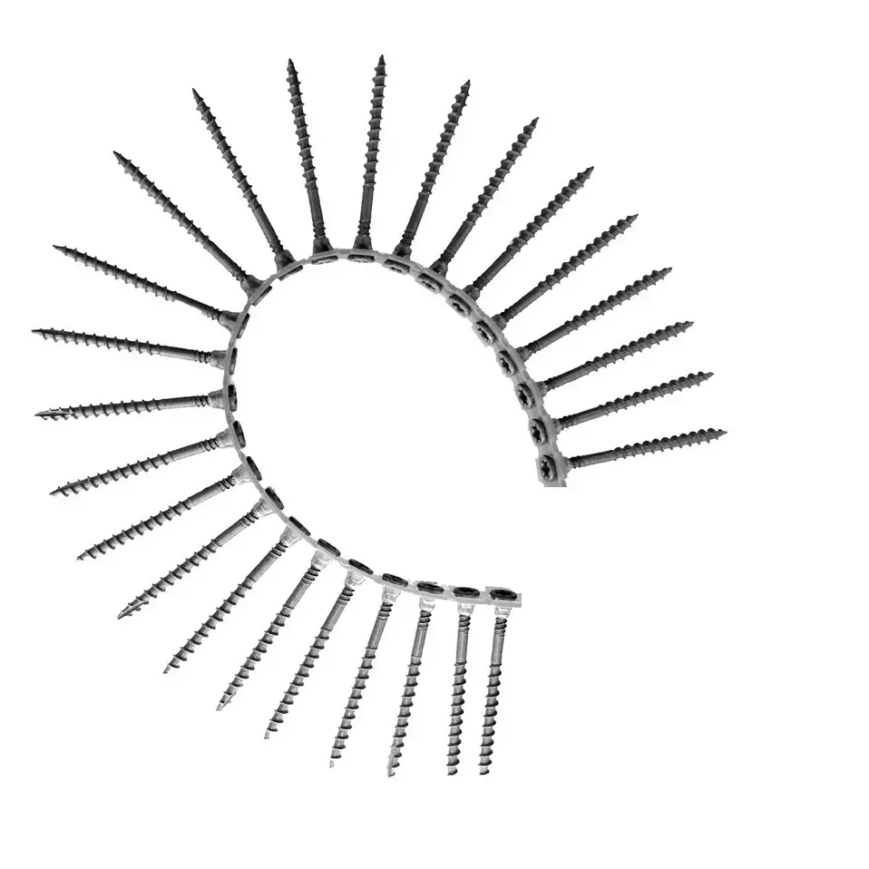 HOBAU-tyyppinen, yleiskäyttöinen puuruuvi, joita käytetään tyypillisesti mm. lattioiden alusrakenteiden asentamiseen sisä- ja ulkotiloissa.