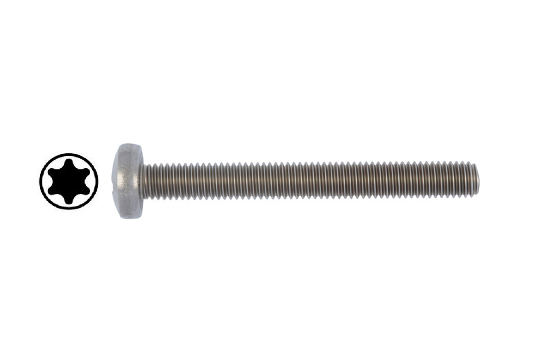 DIN7985 TORX uraruuvi M-kierteellä, pallokanta, A4 haponkestävä.