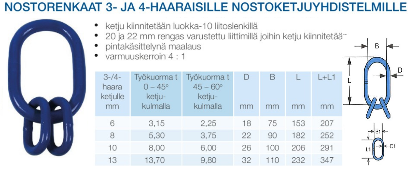 - Vakiokokoinen nostorengas 10-luokan nostoketjuyhdistelmiin.