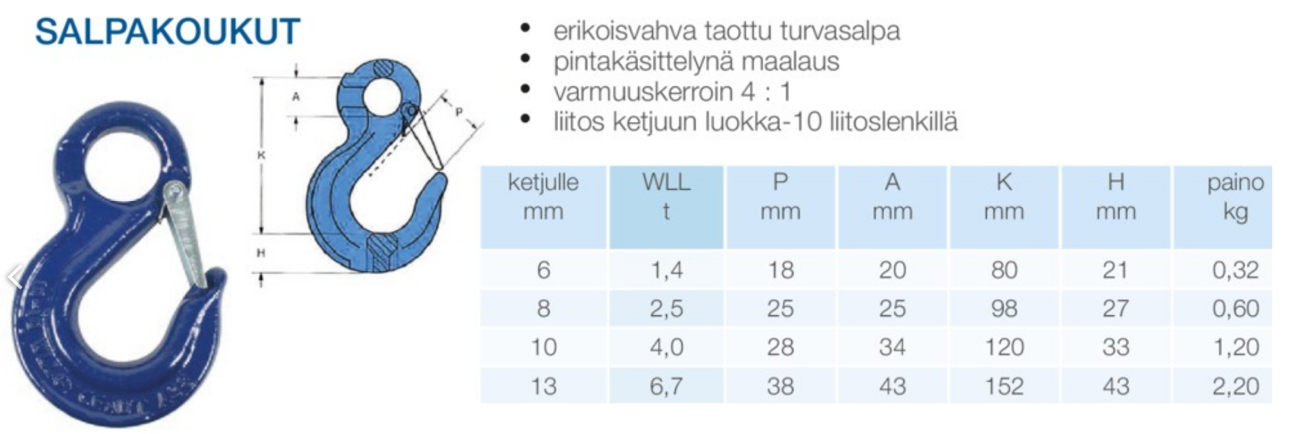 - Salpa ja varmuuskoukut