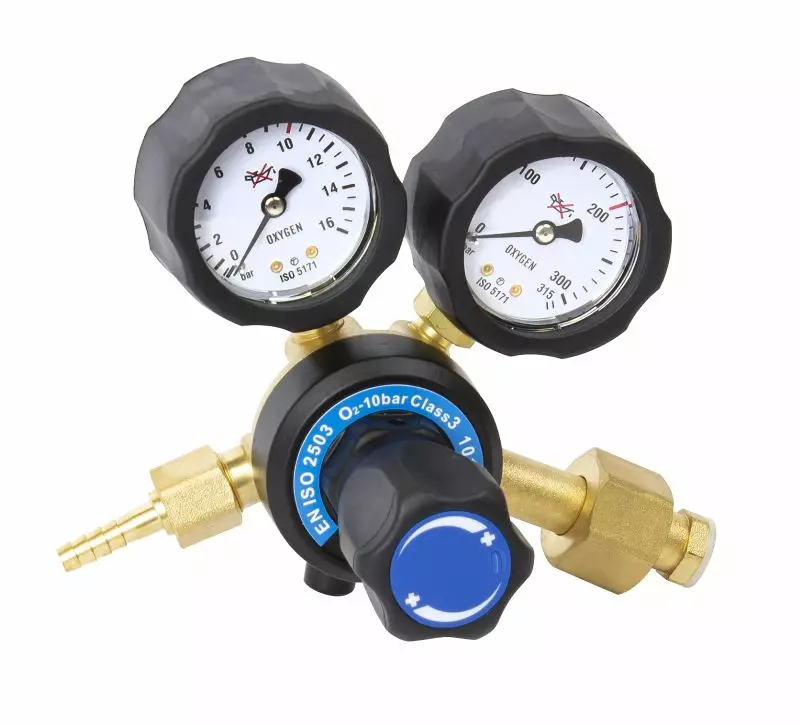 Happisäädin pullonpainemittareilla, asennetaan happipulloon.