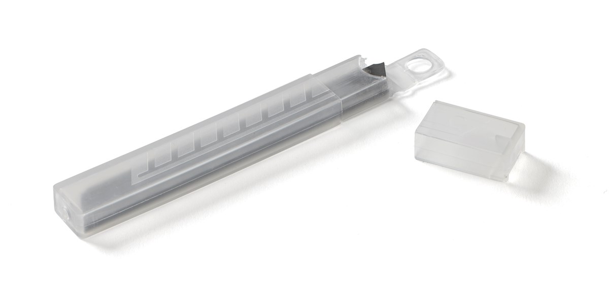 - Tehty hiiliteräksestä, karkaisu on 58-60 HRC. - Leveys 18mm. - Pakattu kätevään säilytysrasiaan, jossa neljä teräpakkausta, joissa kolme terää kussakin. - Numeroidut katkoterät näyttävät kuinka monta terävää terää on vielä jäljellä. - Kussakin terässä 8–12 katkoterää ja viimeinenkin terä on myös käytettävissä. .