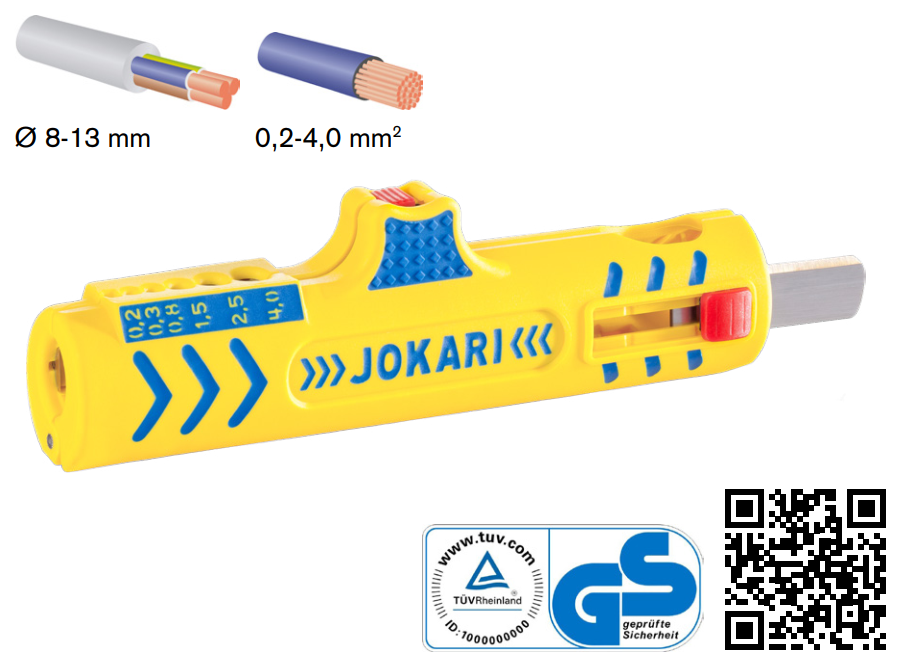Super kätevä kuorija halkaisijaltaan 8-13 mm kaapeleille ja 0,2-4,0 mm² johdoille.