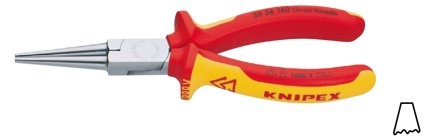 VDE sähköeristetyt pyörökärkipihdit. Pyöreillä, sileillä kärjillä kaarevien muotojen käsittely onnistuu kätevästi.
