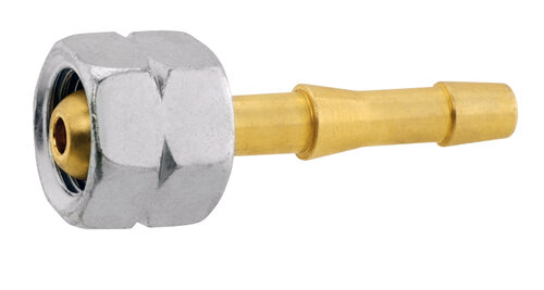 Nestekaasuletkuun klemmarilla liitettävä letkuistukka.