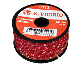 Puna-valkea 1,5mm paksu linjalanka 50m rullana. Vetolujuus 60kg. Myydään täysinä rullina.