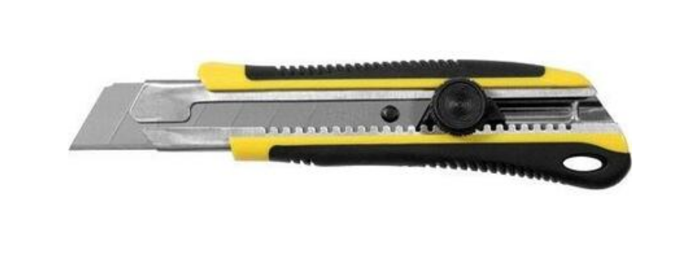 Katkoteräveitsi 25mm leveällä terällä. Runko ruostumatonta terästä, pitävä kuminen kädensija, manuaalinen terälukko.