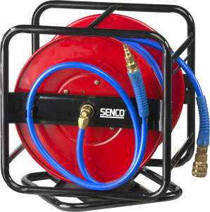 SENCO 30 metrin letkukela 360° kääntyvällä jalustalla. Teräksestä valmistettu runko ja kampikelaus. Suojatut letkun päät.
