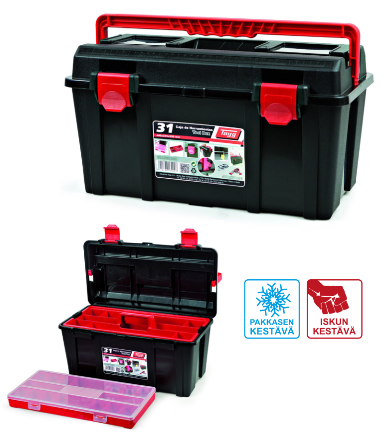 Espanjalainen Tayg tarjoaa ammattilaisen vaatimuksiin vastaavat ratkaisut työkalujen säilytykseen ja kuljetukseen. Muovipakit ovat iskun– ja pakkasenkestäviä ja viimeiseen asti mietityt lokerikot kestävät käytössä vuosia. Yli 40 vuoden kokemus muovinruiskutuksesta näkyy tuotteiden innovatiivisuudessa ja korkeassa laadussa. Tayg kantaa vastuunsa ptkään.