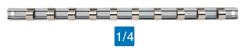 Euroopassa valmistettu UNIOR peltinen kisko 1/4" hylsyille. 10kpl metallisia hylsyklipsejä. Kiskon pituus 205mm. Elinikäinen takuu materiaali- ja valmistusvirheiden osalta.