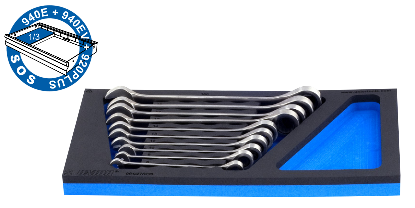 Euroopassa kromivanadiinista valmistettu UNIOR 10-osainen räikkälenkkiavainsarja työkaluvaunuun. Elinikäinen takuu materiaali- ja valmistusvirheiden osalta.