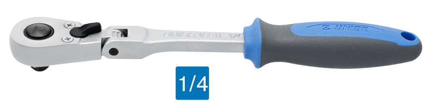 Euroopassa erikoistyökaluteräksestä valmistettu UNIOR 1/4" räikkäväännin nivelellä. Taottu runko, täysin karkaistu. Ergonomisesti muotoiltu 2-komponenttikahva. Elinikäinen takuu materiaali- ja valmistusvirheiden osalta.