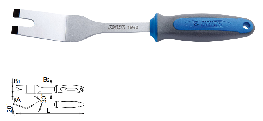 • L:230 mm • B1:8,5 mm • B2:28 mm • A:2,5 mm • UNIOR •