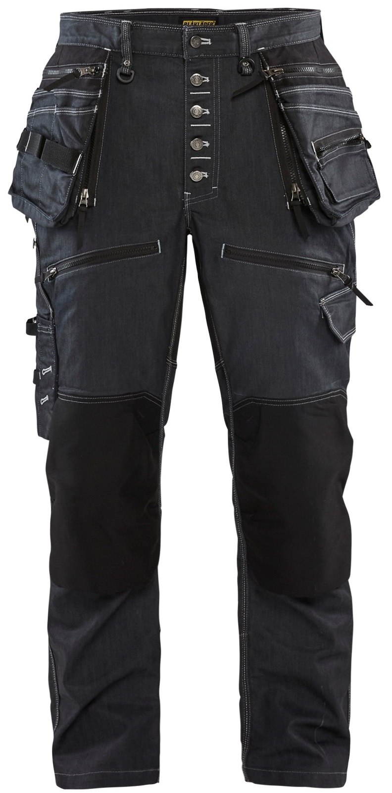 Kestävät riipputaskuhousut, joissa on matala haara ja kapenevat lahkeet. Housut on valmistettu Cordura® Denim kankaasta, joka on joustavaa ja mukavaa päällä. Erinomaista liikkuvuutta ja mukavuutta varten housuissa on joustavat osiot haaroissa ja pohkeissa. Polvet sekä toiminnaliset taskut on Cordura® 1000-vahvistetut. Riipputaskuissa on vetoketjut, mikä mahdollistaa niiden kiinnittämisen reiteen.