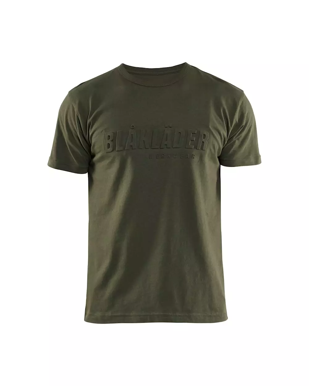 Tyylikäs puuvillainen t-paita 3D printillä edessä, jossa lukee "Blåkläder". T-paita sopii niin työhön kuin vapaa-ajalle ja osoittaa, että käyttäjällä on erittäin hyvä maku työvaatteiden suhteen.