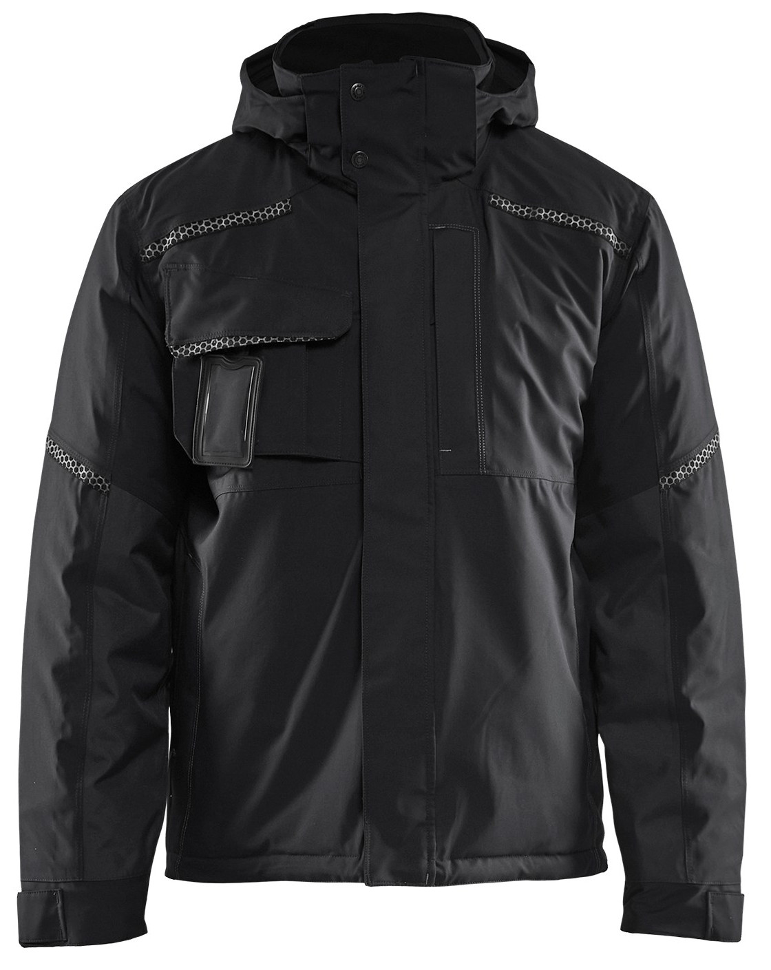 Erittäin toiminnallinen tuulen- ja vedenpitävä talvitakki, jossa on teipatut saumat, korkea fleecevuorattu kaulus ja irrotettava ja säädettävä huppu. Tikkivuori, jossa verkkokangas selän yläosassa ja kainaloissa hengittävyyden parantamiseksi. Useita erilaisia taskuja. Tarroilla säädettävät hihansuut resoreilla ja peukalonaukoilla. Heijastavat painatukset valituissa kohdissa näkyvyyden lisäämiseksi. Sertifioitu EN 342 (Suojaus kylmältä) yhdessä talvihousun 1810 kanssa ja EN 343 (Suojaus sateelta)