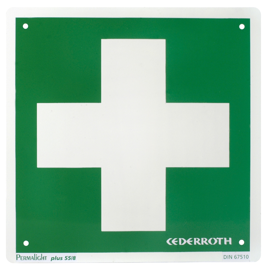 Kaksipuoleinen opastekilpi, risti on kovamuovista valmistettu jälkivalaiseva kyltti. Latautuu päivänvalossa tai keinovalossa ja hehkuu pimeässä. Täyttää DIN 67510 vaatimukset. Kaksipuolinen, voidaan käyttää tavallisena seinäkilpenä tai pidikkeen avulla molemmille puolille.