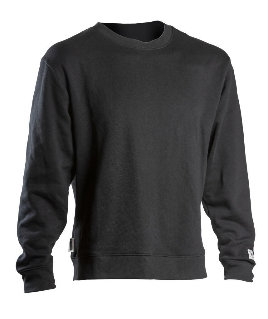 Musta collegepaita, johon saa hyvin painettua yrityksen logot. Pehmeä laadukas kangas tuntuu hyvältä käytössä niin töissä kuin vapaa-ajalla. Paidan mitoitus on rennon väljä.