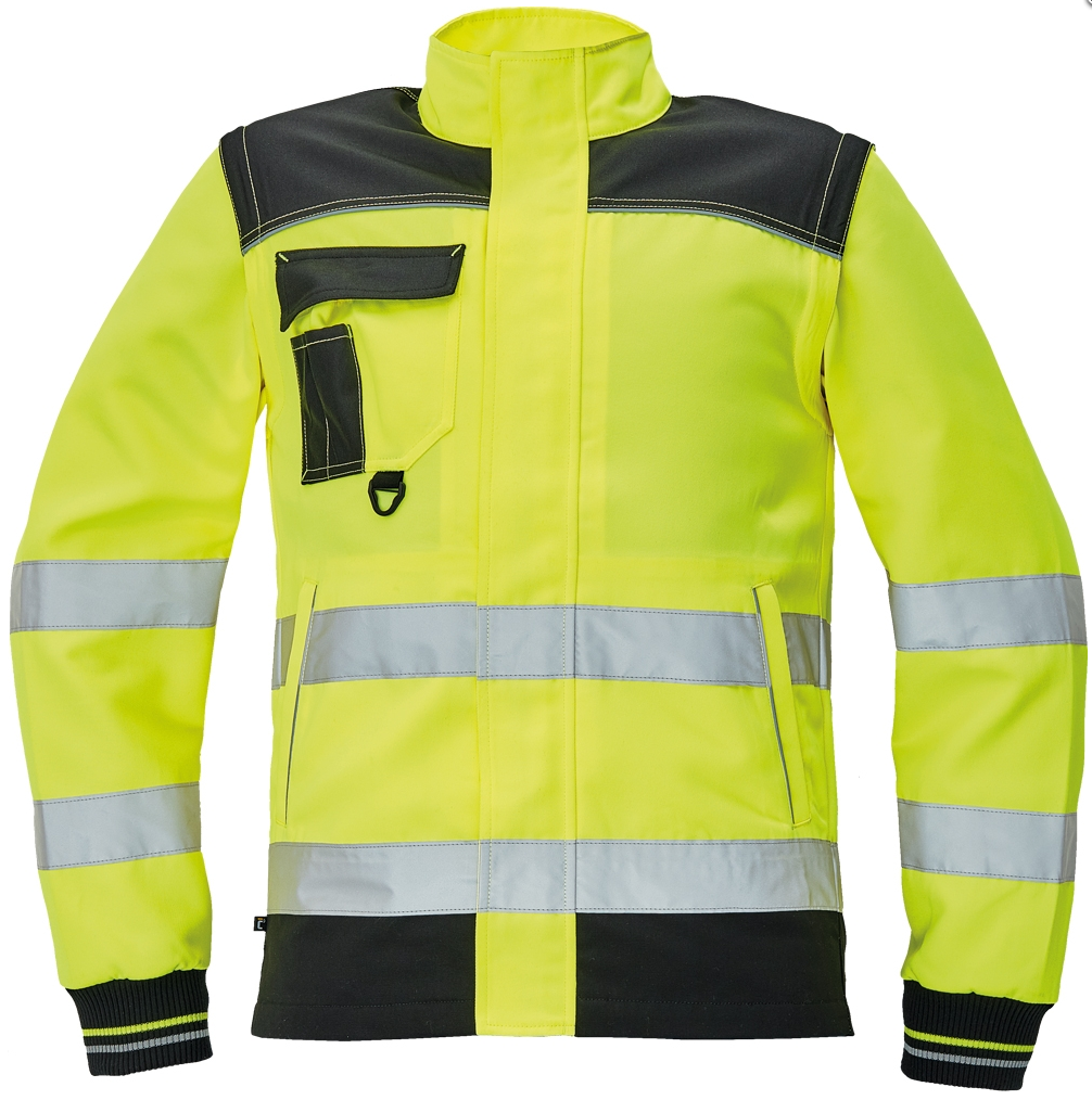 Kesämallin turva työtakki keltaisella Highvis värityksellä. 20% puuvilla, 80% polyesteriä. LK.2