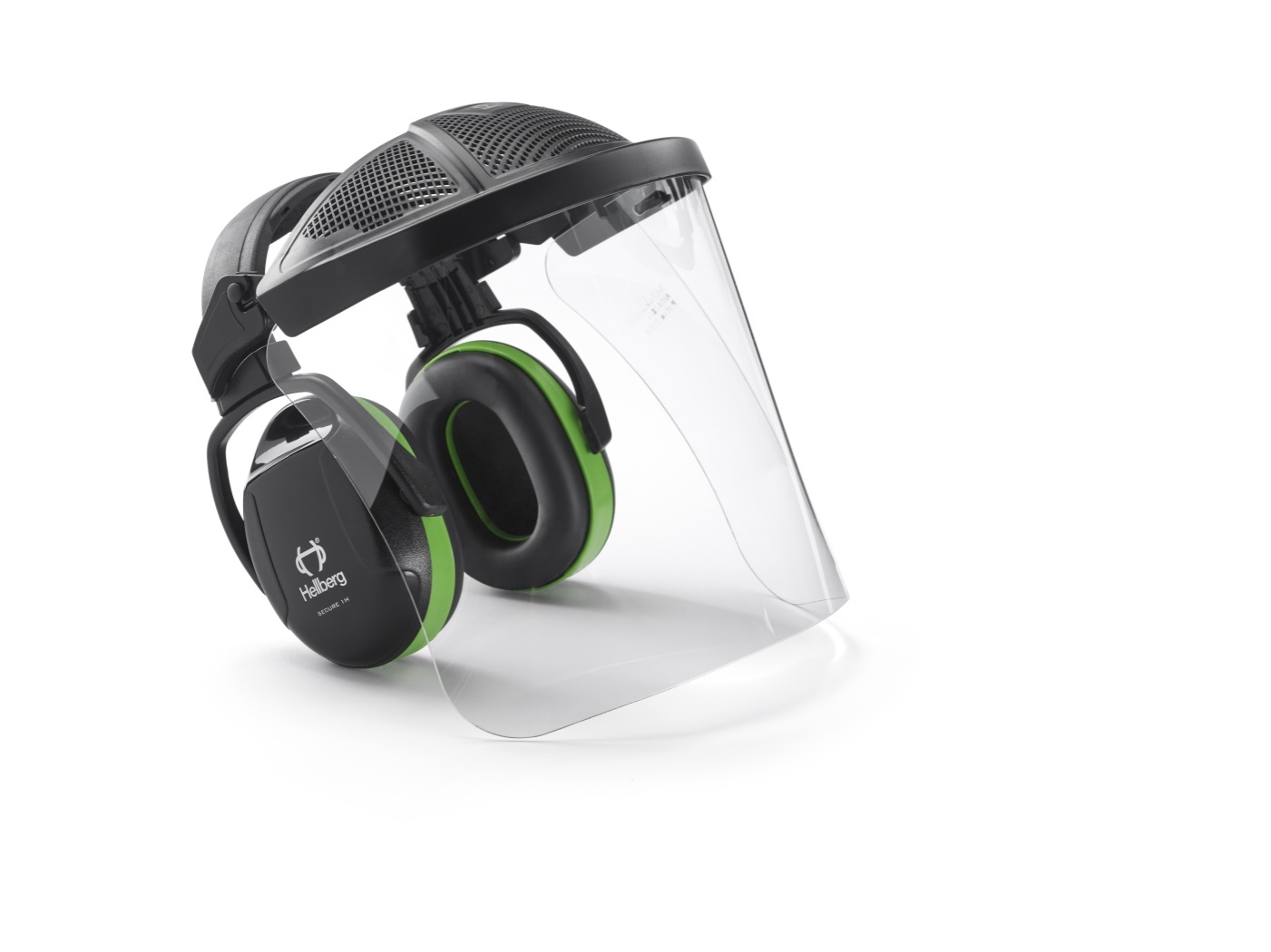 Secure 1 kuulonsuojaimien ja kirkkaan Safe-polykarbonaattivisiirin yhdistelmä. Erinomainen käyttömukavuus ja suojaus työhön, joka vaatii kuulon- ja kasvojensuojausta. Erittäin hyvä ilmanvaihto ja suoja iskuja vastaan.