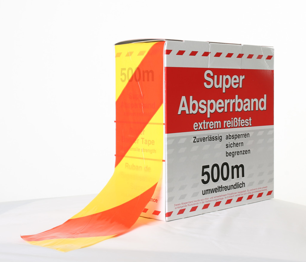 Ohut ja erittäin kestävä (SuperStrong) muovinauha, joka soveltuu esimerkiksi erilaisten työalueiden rajaamiseen.