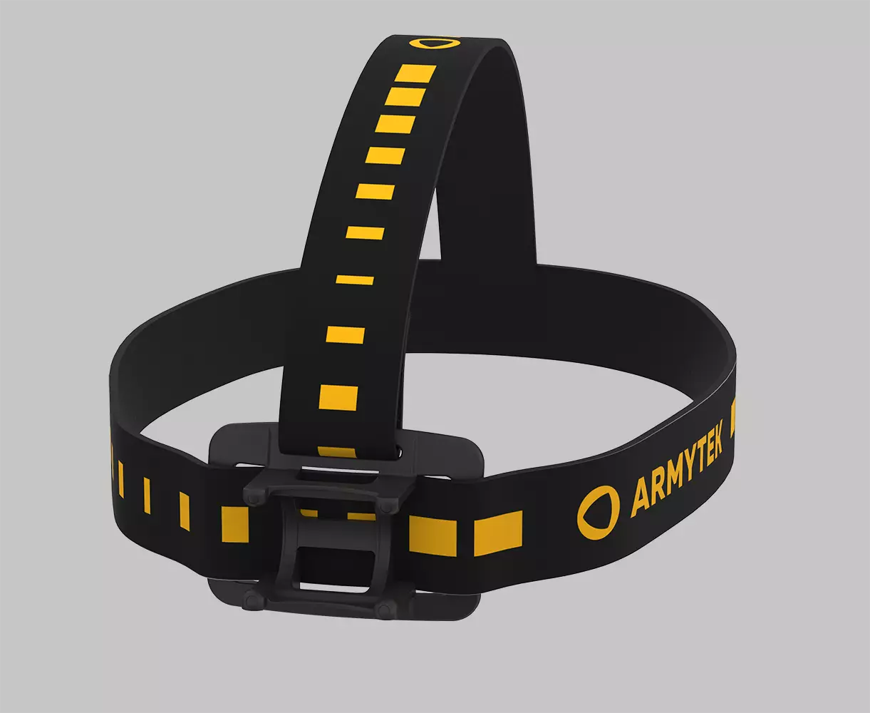 Armytekin otsaan kiinnitys on suunniteltu maximaalista käyttömukavuutta varten. Pehmeät joustavat nauhat pitävät valaisimen tukevasti paikoillaan, eivätkä ne hankaa ihoa tai jätä jälkiä. Valaisin kiinnitetään yhdella liikkeella, ja lisäksi pikalukittava silikonirengas estää putoamisen vahingossa. Pannan koko on säädettävissä.